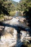 Es geht weiter hinein in den Regenwald über einen wilden Fluss. Unser Guide Fuarisco hat sich heute übrigens richtig warm angezogen: zwei Jacken, Wollmütze und Handschuhe. Er ist in einer wärmeren Gegend Madagaskars aufgewachsen.