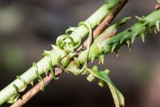Und wenige Meter später staunen wir schon wieder: ein winzig kleines Chamäleon auf einem kleinen Ast. Der kleine Winzling ist kaum zu erkennen.