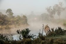 Heute fahren wir in den Nationalpark „Andringita“ weiter nach Süden. Am Morgen verdunstet das Wasser von den Blättern im Regenwald und auf den Gräsern und Feldern. Auf dem Wasser der Bäche und Seen bilden sich Nebelschwaden. Es ist als fahren wir durch ein Wolkenmeer.