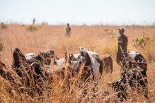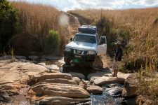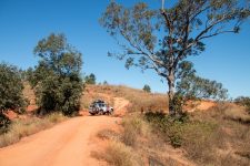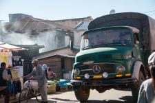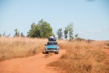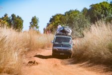 Nach einiger Zeit biegen irgendwo von der geteerten Straße auf einen Feldweg ab. Nein, eigentlich ist es kein Feldweg. Eigentlich sind es nur Fahrspuren die quer durch die Savanne führen. Wir durchfahren abgelegene Dörfer und uns begegnen immer wieder Fußgänger und andere Geländewagen. Aber zu unserem Erstaunen fahren hier auch „normale“ Autos. Also alte Renaults aus den 70ern. Auf der Straße sind auch viele alte Rundhauber unterwegs. Das sind alte Mercedes-LKWs der Modell-Reihe 911.