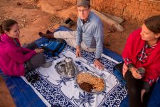 Zum Mittagessen gibt es ein kleines Picknick an der Straße. Und weiter geht’s auf immer schlechter werdenden Wegen. Nach einigen Stunden erreichen wir eine Mandarinen-Plantage und kaufen direkt aus dem Auto heraus einige frische Mandarinen. Lecker! Und die Kinder aus dem Dorf sind total aus dem Häuscen. Für sie sind wir eine Attraktion. Hier kommen nicht viele Touristen vorbei.