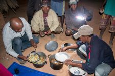 Um 18uhr ist es dunkel und langsame erscheinen immer mehr Sterne über uns. Vor dem Abendessen, und während für uns gekocht wird, genießen wir einen Cocktail aus Ingwer und Rum. Und der Sternenhimmel über uns ist WOW! Zum Abendessen gibt es Zebu-Gulasch und Reis. Die nächste Stadt ist viele Kilometer entfernt und deshalb stört uns kein Licht der Zivilisation um den Nachthimmel zu beobachten. Wir sind auf der Süd-Halbkugel unseres Planeten und sehen somit ganz andere Planeten und Sterne als auf der Nordseite. Unsere Milchstraße ist wundervoll mit bloßem Auge zu sehen.