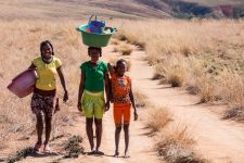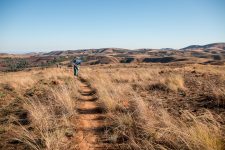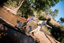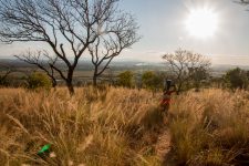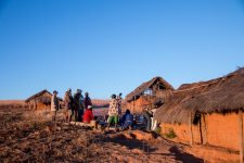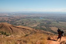 Wir treffen immer wieder freundliche und neugierige Menschen auf dem Pfad, die ihre Waren von einem Dorf ins andere tragen. Nach dem Mittagessen, übrigens ein sehr leckerer Nudelsalat mit Thunfisch, sehen wir in der Ferne in einem weiten Tal gelegen den Manambulo. Auf diesem Fluss soll morgen unsere mehrtägige Kanutour starten. Etwa eine Stunde nach dem Mittagessen geht es nur noch in steilen Stufen bergab. Aber die Aussicht auf das Tal und den Fluß entschädigt bestens dafür. Der Weg ist steil und an einigen Stellen sehr rutschig wegen dem Sand und dem Geröll. Claudia stürzt das zweite mal. Den restlichen Weg bergab gehe ich direkt vor ihr und zeige ihr an schwierigen Stellen wohin sie welchen Fuß setzen muss. Vielleicht war sie ja bisher nur in der Stadt wandern? Aber nach einem kleinen Wasserfall wird der Weg wieder besser und bald haben wir auch unseren Zeltplatz erreicht. Er liegt unter Bäumen neben einem kleinen Rinnsal in dem wir uns erstmal den Staub des Tages von unseren müden Körpern waschen können.