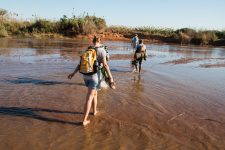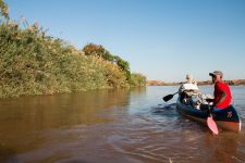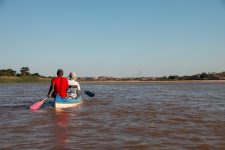 Wir paddeln mit der Strömung und laufen immer wieder auf Grund. Der Wasserstand ist nicht sehr hoch. Am Ufer sehen wir immer wieder spielende Kinder und kleine Zebu-Herden. Auf einer der vielen Sandbänke bauen wir dann auch unser Camp auf. Anschließend genießen wir bei einem Glas Rum den wundervollen Sonnenuntergang. Auf der anderen Uferseite brennt wieder eines der vielen Buschfeuer, die uns schon die letzten Tage begleiten. Und während uns die Moskitos auffressen leuchten über uns wieder die wundervollen Sterne des südlichen Himmels.