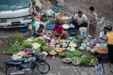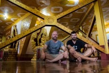 Als wir wieder in Mandalay ankommen lassen wir uns am großen Einkaufscenter absetzen. Es ist das größte in Myanmar und wir wollen uns das Warenangebot anschauen. Das Diamond-Shopping-Center ist eine Ansammlung von kleinen Geschäften in einer absolut undurchsichtigen Anordnung. An der einen Stelle geht die Rolltreppe nur bis ins 1.OG aber der Fahrstuhl bis nach ganz oben. Durch Zufall finden wir ein zweites und ein drittes Treppenhaus. Wobei im dritten Treppenhaus die Rolltreppe nur vom 5. ins 6.OG funktioniert. Und ganz nebenbei stehen wir auf einmal auf der überdachten Dachfläche der Shoppingmeile die mit einer großen Bühne für Konzerte oder Veranstaltungen genutzt wird. „We are lost in Myanmar-Shopping-Mall“.
