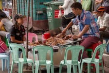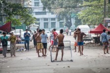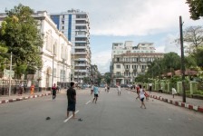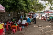 Unsere erste Tour durch die Stadt führt uns an unzähligen Märkten und noch unzähligeren Street-Food-Ständen vorbei. Das Leben spielt sich auf der Strasse ab: Märkte, Fussball, Essen. Die meisten Häußer sind in einem schlechten Zustand und vom Zerfall geprägt. Den Abend lassen wir am Fluss Ayewardy ausklingen bei einem Myanmar-Bier und  Chicken in Lemon-Sauce.