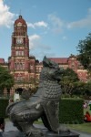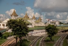 Auf geht’s! Yangon erkunden! Wir machen uns zu Fuß auf den Weg. Unser Ziel ist die Central Railway Station in der Altstadt. Wir haben nur ein Problem: jeden, den wir nach dem Weg fragen kann uns den Weg nicht zeigen. Man versteht uns nicht, denn alle die wir ansprechen verstehen kein Englisch. Selbst Sicherheitskräfte verstehen bei unserer Frage nur Bahnhof.  Also machen wir uns alleine auf die Suche. Und kommen auch an.