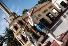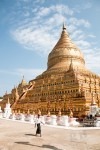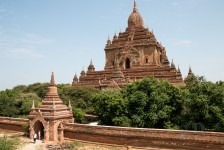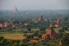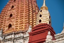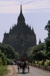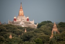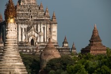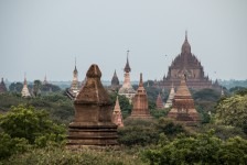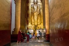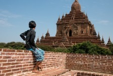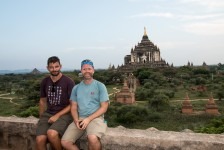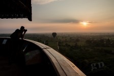 Um kurz vor 5 klingelt der Wecker! Wir wollen den Sonnenaufgang vom Aussichtsturm über Bagan fotografieren und unser Taxi holt uns um 5:15Uhr ab. Auf dem Aussichtsturm sind nur wenige Menschen und wir haben einen tollen Ausblick auf die tausenden von Pagoden, Tempeln und Stupas. Langsam kriecht die Sonne empor und die 1000 Jahre alten Heiligtümer aus roten Tonziegeln leuchten vor uns auf. Mit jedem Sonnenstrahl werden es mehr und mehr. Wundervoll. Die 5000 Kyats Eintritt für diesen Turm haben sich gelohnt! Und pünktlich zum Frühstück um kurz nach 7 sind wir wieder im Hotel, denn um 8 Uhr werden wir auch schon wieder abgeholt von unserer Pferde-Kutsche. Mit dem Karren geht es quer durch die Pagoden zu einzelnen Highlights von Bagan. Unser Kutscher heißt übrigens Bobo und unser Pferd Ananda. Die Tempelanlagen sind fast alle aus roten Tonziegeln gemauert und wir werden oft von einheimischen Jugendlichen angesprochen ob wir hinaufklettern wollen. Und ob wir das wollen. Dabei geht es meist auf einen andere Tempel in der Nähe. Schmale Treppen führen durch dunkle Gänge nach oben. Das ist Nichts für große Menschen! Aber die Aussicht ist schon toll! Auf dem Rückweg führen uns die Kids auch gleich zu Ihren Souvenirläden und wollen uns die üblichen Postkarten und T-Shirts verkaufen. Zwischendurch haben wir noch für den folgenden Morgen eine Ballonfahrt gebucht: Bagan von oben: das wird bestimmt ein tolles Erlebnis. Nach dem Mittagessen geht es weiter durch die Pagoden und Alt-Bagan. Sehr sehenswert ist die große Ananda-Pagode mit vier großen Buddhas. Das Gelände um die Pagode herum ist mittlerweile restauriert worden. Leider mit viel Beton. Allerdings wird so auch das Ausmaß dieses großen Heiligtums ersichtlich. Auf dem weiteren Weg standen noch weitere Pagoden am Fluss und in der Nähe von Alt-Bagan. An einer Pagode wurden wir wieder von ein paar Kids zum klettern ermuntert. Und das hat sich dieses Mal richtig gelohnt. Die Aussicht ist fantastisch und in diesem Moment zeigt die Sonne auch ihre schöne Seite. Tolle Bilder der Pagoden- und Tempel-Landschaft sind entstanden. Zum Sonnenuntergang geht es zu einer ziemlich großen Pagode auf die man ausnahmsweise auch mal ganz offiziell klettern darf. Und das wird auch von vielen vielen Touristen genutzt. Der Ausblick ist einfach toll. Aber vor die Sonne schiebt sich im richtigen Augenblick auch wieder eine große Wolke. Schade. Aber wir nutzen die Zeit und machen uns über die anderen Leute auf dem Tempel lustig. Japaner mit speziellen Stöcken um mit dem Handy Selbstporträts zu schießen. Eine Gruppe Studenten aus Singapur die einen Haufen Fun-Fotos machen. Lustig. Aber die Sonne will nicht wirklich mitspielen. Beim Abstieg kommt Andre noch der Gedanke „nochmal kurz ein Foto gegen die untergegangene Sonne zu schießen. Wir experimentieren ein wenig und es werden die besten Fotos vom Sonnenuntergang. Auf dem Rückweg kommt dann auch unsere Taschenlampe zum Einsatz, denn unser Pferd Ananda hat keine Scheinwerfer und es geht querfeldein durch die Pagodenlandschaft im Dunkeln zurück nach Neu-Bagan. Ein herrlicher Tag geht zu Ende.