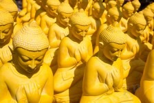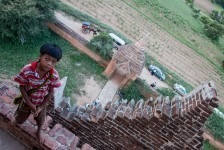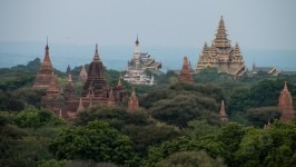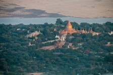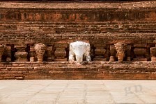 Wir haben uns für heute wieder Fahrräder gemietet. Dieses mal allerdings Mountainbikes. Die Räder sehen um Längen besser aus als unsere letzen Fahrräder welche ja schon nach ein paar Kilometern den Geist aufgegeben haben. Trotzdem machen wir schnell noch eine kleine Probefahrt und … knack! Die Pedale ist an meinem Rad abgefallen. Also warten wir auf Ersatz. Aber dann geht’s wirklich los in die „City“ wir schauen uns noch eine goldene Pagode in Neu-Bagan an. Diese liegt etwas abseits der üblichen Touristentouren und wir sind sehr angetan von der Ruhe an diesem Ort, die nur durch das Gezwitscher der vielen Vögel durchbrochen wird. An keinem anderen Ort haben wir soviel Vogelgezwitscher gehört. Weiter geht’s auf unserer kleinen Radtour zu einem Tempel etwas außerhalb, die laut unserem Handbuch für Myanmar durch seine 172 Elefantenköpfe so außergewöhnlich sein soll. Ein Souvenir-Verkäufer Vorort zeigt uns noch einen Weg ins Innere der Pagode: an einer kleinen Stelle ist ein Loch zum kriechen freigehackt. Ich gehe weniger Meter hinein und kann in der Dunkelheit mit meiner Stirnlampe einen langen mannshohen Gang erkennen. Es müffelt allerdings so stark in dem alten Gemäuer dass ich lieber nicht weitergehe. Der Einheimische erzählt uns noch von einem großen Buddha in der Bitte und einem unterirdischen Gang zu einem See. Ob das alles wirklich wahr ist? Wir sind zwar mittlerweile im Pagoden-Klettern recht geübt, aber in diese absolute Dunkelheit einzusteigen lassen wir einfach mal ausfallen. Auf dem Rückweg zu unserem Hotel entdecken wir die Hinterlassenschaften der Neuzeit: wir radeln quer durch die Müllhalde von Bagan. Zivilisationen hinterlassen nunmal Spuren.