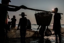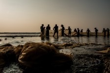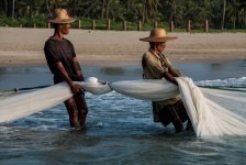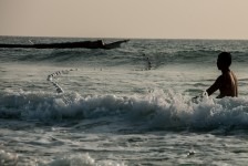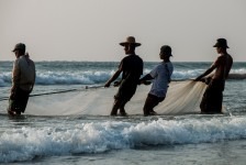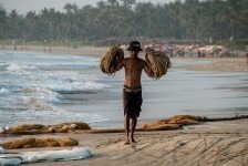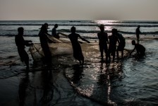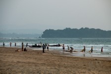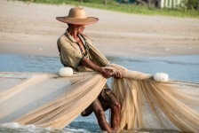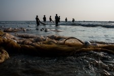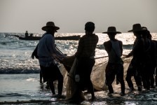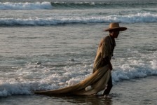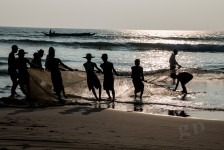 Das Wasser ist klar und die Wellen sind prima. Wir können weit hinausgehen, so flach ist das Wasser hier! Am Nachmittag hüpfen wir erst ins Wasser um uns abzukühlen und anschließend gehen wir in einem der großen (und teuren) Ressorts ein Eis essen. Die Ressorts haben keine eigenen Privatstrände. Mal sehen wie lange das noch so bleibt. Gegen Abend fotografieren wir noch die Fischer wie sie am Strand ihre Netze einholen. Was für ein Anblick in dem tollen Abendlicht!