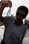 Pünktlich um 5 Uhr kommen wir in Yangon am Busbahnhof an. Damit hätten wir nicht gerechnet. Jetzt müssen wir nur noch umsteigen in den Bus nach Ngwe Saung. Dieser Bus fährt allerdings von einem ganz anderen Busbahnhof in Yangon los. Also geht es rein ins nächste Taxi und quer durch die Stadt zu unserem zweiten Bus. Unser Taxifahrer wollte eigentlich Rennfahrer werden, so wie der durch Yangon rast! Wir kommen auch pünktlich an und genießen bis zur Abfahrt noch das Treiben der Händler auf dem Busbahnhof. Die Händler verkaufen aus der Hand so ziemlich alles was man nicht gebrauchen kann: Kleider, Bücher, seifenblasenmachende Wasserpistolen, Plakate, Landkarten, usw.