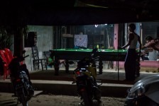 Und es kommt noch viel mehr! Nach der vierten Kotztüte bei der Mama hab ich aufgehört zu zählen. Und um uns herum fangen während der Fahrt immer mehr Reisende an zu kotzen. Zugegeben: der Busfahrer fährt wirklich wie ein besengte Sau! Passenderweise halten wir in Pathein zur Essenspause an und so ziemlich alle hauen sich die Bäuche wieder voll. André und ich gönnen uns einfach nur eine eiskalte Coke! Herrlich! Die letzte Stunde zum Beach von Ngwe Saung geht es in scharfen Serpentinen durch eine hügelige Dschungel-Landschaft und auch immer wieder auf und ab. Und was passiert: genau! Die anderen hätten sich ihr Mittagessen auch sparen können. Es landet jetzt in der Tüte. Wir sind vier Ausländer in dem Bus und wahrscheinlich zusammen mit dem Busfahrer die Einzigen, die die Tüte nur als Mülleimer genutzt haben.
