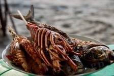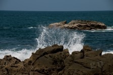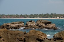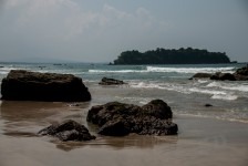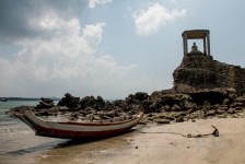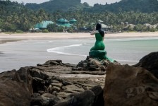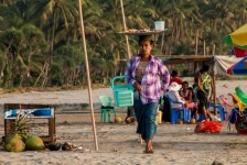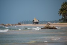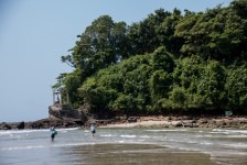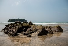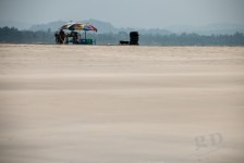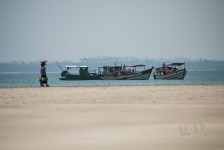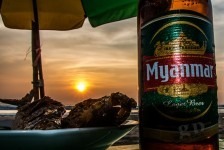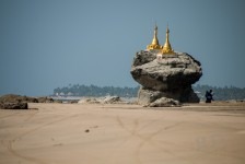 StrandAusschlafen! Gestern Abend sind wir einfach nur totmüde ins Bett gefallen. Beim Frühstück treffen wir den Franzosen mit seiner thailändischen Freundin, die gestern mit uns im Bus gesessen haben, wieder. Wir verabreden gemeinsam ein Boot für den nächsten Tag zur Bird Island zu nehmen. Beim Frühstück lernen wir Neta kennen. Neta kommt aus Israel und reist bereits seit Mai durch Asien. Sie erzählt uns von interessanten Reisezielen ihrer Tour wie Sibirien, China oder die Mongolei. Am Vormittag machen André und ich einen langen Strandspaziergang zur Love-Island. Selbst am Vormittag brennt die Sonne auf uns nieder. Zur Love-Island gelangt man bei Ebbe sehr gut zu Fuß über eine davor liegende Sandbank. Die Insel selbst ist mit tropischem Regenwald bewachsen und nicht sehr groß. Wir überklettern die Insel in etwas mehr als einer halben Stunde und legen auf dem Rückweg noch eine Pause zu Suppe und Salat in einem Strand-Restaurant ein. Die Mittagssonne ist noch heißer! Auf dem Rückweg zu „unserem“ Strandabschnitt bestaunen wir noch die Zwillingspagoden, die auf zwei Felsen gebaut wurden, die bei Flut im Wasser stehen. Jetzt bei Ebbe sehen die Felsen eher wie steinerne Bäume aus. Unten sind sie schmaler als oben. Die kleinen Pagoden scheinen oben auf der Baumkrone zu stehen. Wir kehren auf unserem Weg wieder in dem Myanmar Treasure Ressort ein um ein Eis zu essen und einen Kaffee zu trinken. Und außerdem gibt es hier WLAN. Dort treffen wir auch Neta wieder. Sie relaxt im Pool. Und wir relaxen nach dem Eis und dem Kaffee im Ozean. Dort sind einfach die Wellen besser! Aber das Bier zum Sonnenuntergang trinken wir dann wieder zu dritt. Neta erzählt uns von ihrem Trip durch die Mongolei, durch Sibirien und China. Die Bilder auf ihrer Kamera machen Lust auf mehr von diesen Ländern.