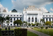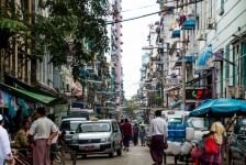 Heute Reisen wir ab. Wir haben mit unserem Taxifahrer ausgemacht, dass er uns um 13:30Uhr an unserem Hotel abholt und uns zum Flughafen bringt. Bis dahin schlendern wir noch durch Yangon, Unser Taxifahrer ist auch überpünktlich und wir kämpfen und fast eine Stunde durch den dichten Verkehr in Yangon.