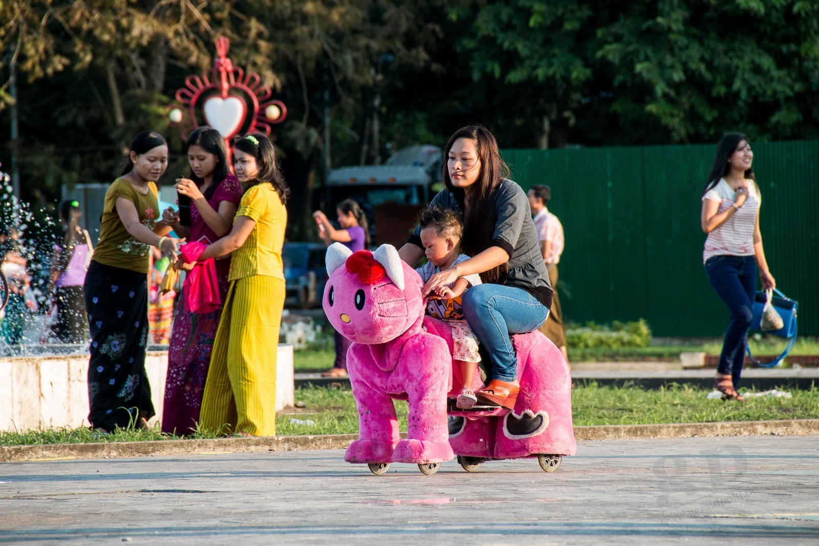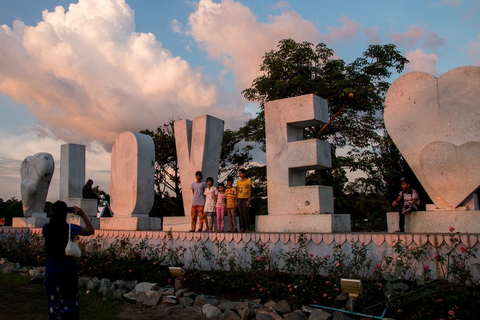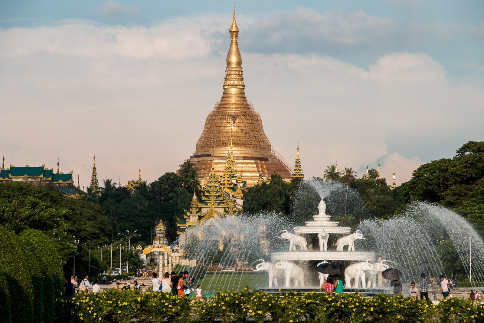Nach unserer Bahnfahrt nehmen wir uns ein Taxi in den Volkspark. Hier hat man einen sagenhaften Blick auf die Shwedagon-Pagode. Wir sind absolut überrascht was hier los ist! Hier treibt sich die Jugend von Yangon herum. Und André und ich werden zur Hauptattraktion: Familien machen Fotos von uns gemeinsam mit ihren Kids und Yangons Teenies wollen Fotos mit uns machen. Wir sind ja auch Weltmeister!