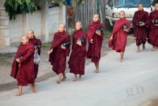 Während unseres Mittagessens geht ein großer tropischer Regen über Pindaya nieder. Aber wir sitzen im besten Restaurant der Stadt und genießen die Abkühlung. Auf unserem Rückweg zum Inle-See schüttet es weiter wie aus Eimern und aus einigen Straßen sind Sturzbäche geworden. Und plötzlich hört der Starkregen auf und die Straße ist trocken. Das sind die Tropen. Auch am Inle-See ist es noch trocken. Da wir noch Zeit haben, bis unser Bus nach Mandalay abfährt gehen wir in ein Café indem es richtigen Kaffee gibt. Und WLAN. Das WLAN funktioniert, aber die Kaffeemaschine „is not working“. Dafür gibt es aber leckeres Dragon-Fruit- und Limetten-Eis. Pünktlich um 17:30 sind wir wie vereinbart bei unserem Treffpunkt um auf unseren Bus zu warten und Moe sagt uns, dass der Pickup erst um 18 Uhr kommt. Er kommt allerdings erst um 18:45Uhr und selbst unser „everything is possible“-Moe wird langsam nervös und telefoniert hinter unsrem Pickup hinterher. Aber unser Bus fährt ja auch erst um 20Uhr ab und nicht wie gedacht um 19Uhr. Ja so ist das eben: „die Deutschen haben die Uhr, und Birma hat die Zeit!“