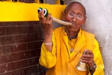 Nach dem Essen, es gibt Dhaal-Bhat, und einem chinesischen Schnaps, der nach Pattex schmeckt, geht’s dann auch langsam ins Bett. Mein Bett steht in der Küche für eine Nacht. Irgendwie hab ich aber auch nicht mitbekommen, das die Wohnung von noch einer Familie bewohnt wird. So werd ich morgens auch geweckt, als eine Frau mit ihrem Kind essen zubereitet und an dem kleinen Altar betet. Zu dem Gebet gehört auch das 20 minütige schlagen einer Glocke. Ich bin definitiv wach.