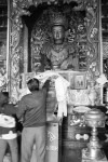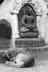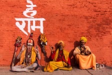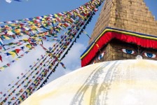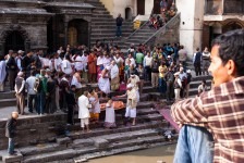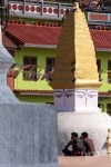 Wir statten uns erstmal mit dem nötigen Kleingeld für unsere Trekkingtour aus. Im Himalaya soll es etwas schwieriger sein an einen VISA-Automaten zu kommen. Unsere Geldbörsen Schwellen über vor Geldscheinen. Und zufällig treffen wir kurz darauf Ben und seinen Guide. Kathmandu ist eben auch nur ein Dorf 😉 Beim gemeinsamen Frühstück verplanen wie den Tag mit einem gemeinsamen Sightseeing. Wir schauen uns verschiedene buddhistische und hinduistische Tempelanlagen an. Interessant ist, das einige Tempelanlagen von Hindus und Buddhisten gemeinsam genutzt werden. An einem Tempel der Hindus werden wir Zeugen einer Beerdigungs-Zeremonie: in Tüchern gehüllt wird von dem Verstorbenen Abschied genommen. Anschließend wird die Leiche am Rand des Flusses auf Holz und Reisig-Stapeln verbrannt. Es gibt eine Menge Zuschauer am Rand des Flusses.