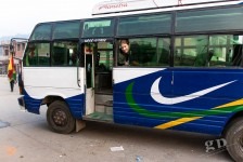 Eigentlich dachten wir der Bus ist voll, aber es gehen noch mehr Menschen hinein. Mittlerweile sind auch sämtliche Stehplätze belegt und dazwischen stapeln sich Ersatzreifen, Tüten aus denen Hühnerfüße schauen, Kochtöpfe und noch viel viel mehr. Wir nehmen aber trotzdem noch jeden mit, der mitfahren will. Die Trittbretter an der Außenseite sind nun auch besetzt und wenn zwischendurch jemand aussteigen möchte, dann geht das geklettere über das ganze Zeugs los. Ein absolutes Erlebnis. Während der ganzen Fahrt dröhnt übrigens nepalesische Popmusik aus en Lautsprechern das man sich so gut wie nicht unterhalten kann.