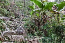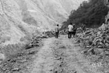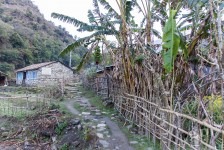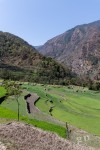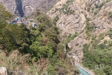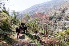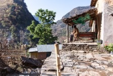 Am Ortsausgang von Bahundanda geht es in steilen Stufen wieder bergab und durch viele Terassenfelder. Später weiter oben am Felsen und immer am Fluss entlang gelangen wir nach einiger Zeit nach Ghermu und machen eine Teepause.