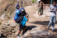 Der Wecker klingelt diesesmal um 6 Uhr denn um 7 Uhr wollen wir starten. Zum Frühstück gibt es Tee, Omletts für uns Beide, ein Pancake für Marleen und ein ein Tibetian Bread für mich. Ziemlich lecker!Unterwegs kommen wir durch das Dorf Ngadi Bazar und stellen fest, das unsere Lodge doch noch ca 1km von Ngadi Bazar entfernt war. Egal, das laufen wir schon wieder raus. Es geht schwach ansteigend durch Felder und über eine Hängebrücke durch eine kleine Siedlung. Sehr malerisch! Leider geht es jetzt wieder auf einer Piste weiter nach Bahundanda. Hier verlassen wir die Straße wieder und gehen quer durch das Dorf. Es liegt friedlich an einem Berghang. Und genau diesen Berghang müssen wir jetzt auch noch hoch! Es geht ziemlich steil den Hang hinhauf und die Stufen sind teilweise wie eine Leiter angelegt. Oben erwartet uns der Dorfplatz. Jeder macht hier eine Pause: Trekker, Träger, Hirten und natürlich einige Marktfrauen. Wir lösen einen kleinen Trubel in den Dorf aus: ich schaue gemeinsam mit einer Marktfrau in meinem Trekkingbuch nach dem Weg. Auf einem der Bilder erkennt sie ihre Schwester. Das wollen die anderen auch sehen. Eine kleine Berühmtheit! 😉 Und um uns herum bildet sich eine kleine Menschentraube.