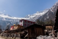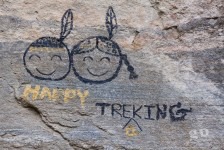 Zum Frühstück sitzen wir mit einer Gruppe Israelis im Gastraum. An unserem Tisch sitzt noch der Weltenbummler Nico aus Deutschland. Die Israelis haben Aufgrund ihrer Nationalflagge immer irgend etwas blaues am Rucksack, an der Kleidung oder auch die Trekkingstöcke. Wir taufen diese Gruppe, die nicht sehr freundlich mit den anderen Gästen umgehen auf die „Schlümpfe“ 😉Heute gehen wir etwas später los, da der Tagestrip ja nicht so anstrengend wird. Der anstrengendste Teil erwartet und gleich zu Beginn: der Aufstieg nach Timang. Es geht wiedereinmal über unzählige Steinstufen steil nach oben durch einen dichten Wald. Teilweise ist der Weg abgerutscht und wir müssen ein bisschen klettern. Die „Schlümpfe“ sind übrigens 20min vor uns gestartet, aber nach 30 Minuten haben wir schon einen Teil eingeholt. Beim Aufstieg unterhalten wir uns noch mit einer anderen Gruppe Israelis.Die sind übrigens ziemlich nett. In Timang machen viele Trekker Pause nach dem anstrengenden Anstieg. Wir gehen aber weiter nach Thanchok weiter. Ein kleines Dörfchen. Wir kehren in einem Teehaus ein und essen erstmal eine Knoblauch-Suppe. Sehr sehr lecker und wieder mit ganzen Früchten 🙂 Aber Knoblauch ist ja gesund und erweitert die Gefäße, was uns weiter oben ja bestimmt helfen kann, wenn die Luft immer dünner wird.