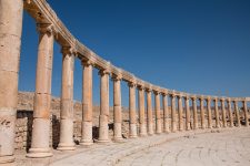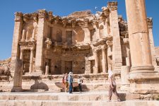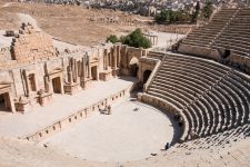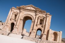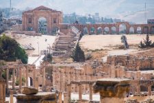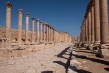 Diese Uferseite des Jordans bzw. des Toten Meeres ist viel grüner als das israelische Ufer. Unser Guide erzählt uns während der Fahrt die Familiengeschichte des jordanischen Königshauses. Ziemlich spannend! Unser erster Halt in Jordanien ist Jerash. In Jerash gibt es die alten Ruinen der römischen Stadt zu entdecken. Jede Menge Säulen, riesige Stadttore, ein Hippodrom, ein Theater und eine Menge Tempel bieten eine tolle Kulisse für Fotos.