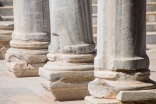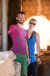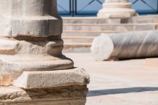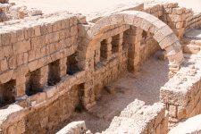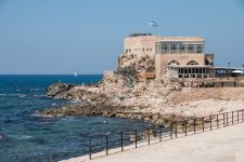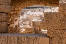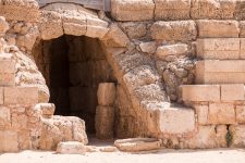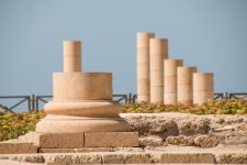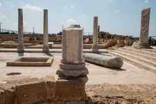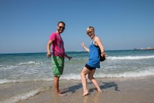 Um kurz nach 7.00Uhr stehe ich auf, denn gegen 8Uhr holt mich ein Taxi ab und bringt mich zum Flughafen. Ich möchte dort den reservierten Mietwagen abholen und die öffentlichen Verkehrsmittel fahren noch immer nicht,  da ja Feiertag ist in Israel. Am Eingang des Flughafens erwartet mich bereits Peter mit dem Rose vorher Kontakt hatte. Peter und ich handeln beim Autoverleiher einen größeren Mietwagen heraus. Zu viert wird es sonst etwas eng mit dem Gepäck. In Tel Aviv laden wir dann noch die Rose und ihre in der letzten Nacht angekommene Schwester Uli ein und zu viert machen wir uns auf den Weg nach Caesarea. Caesarea ist eine Ruinenstadt zuerst der Römer und später der Kreuzfahrer. Heute sind nur noch Überreste der Stadt zu sehen. Wir spazieren über die alten Mosaiken, durch tausende Jahre alte Kornspeicher und durch die alten Bäder mit ihren hohen Säulen. Die Ruinen-Stadt liegt direkt am Meer. Die Zuschauer im Hippodrom und im Amphitheater schauen nicht nur auf die Rennbahn bzw auf die Bühne, sondern auch direkt dahinter auf das blaue Mittelmeer.