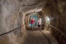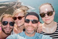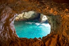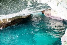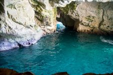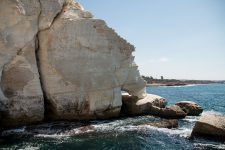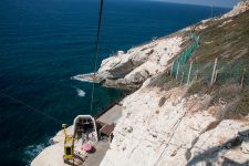 Unsere Fahrt führt uns weiter nach Rosh HaNikra zur Grenze zum Libanon. Direkt am Grenzposten haben wir eine tolle Aussicht auf West-Galiläa bis nach Haifa und natürlich weit aufs Meer hinaus. Von hier aus führt eine kleine Seilbahn zu den Grotten hinab. Das Wasser leuchtet blau in der Grotte und schmale Tunnel führen von einer Grotte zur nächsten.