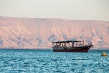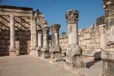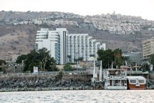 Später fahren wir weiter in Richtung See Genezareth. In der Stadt Kapernaum machen wir einen Stopp. Eigentlich ist es keine Stadt. Aber es mal mal eine. Und zwar hat Jesus hier lange Zeit gewirkt. Auch Petrus hat hier als Fischer gelebt. Über seinem Haus ist eine moderne Kirche errichtet. Es sind allerdings wenige Pilger in diesem Örtchen. Die Ruinen der alten Stadt und vor allem der alten weißen Synagoge sind schon ziemlich interessant. Aber unser Ziel für heute Abend heißt Tiberius. Die Stadt liegt ebenfalls am See Genezareth und wir haben uns in ein Hostel eingemietet. Die Stadt hat allerdings ihren Höhepunkt in der Tourismusbranche bereits hinter sich. Verlassene Hotel-Komplexe und heruntergekommene Promenaden. Wir mieten uns noch ein kleines Motorboot und schauen uns die Stadt mal vom Wasser aus an.