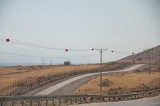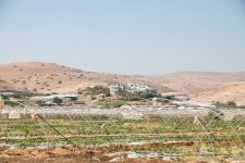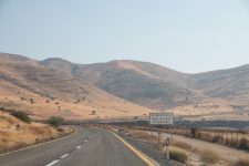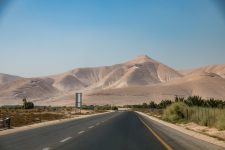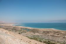 Nach dem Frühstück brechen wir wieder auf nach Süden. Wir wollen nach Masada im Süden des Toten Meeres. Ein Teil der Strecke führt durch habe die Westbank also durch Palästina. Da es ja nur in Richtung Süden geht, fahren wir heute mal ohne Navi. Und prompt wundern wir uns, dass die Grenzanlagen so früh erscheinen. Rechts und Links Minenfelder! Wir sind falsch abgebogen und stehen vor der jordanischen Grenze. Ups. Aber 20min später führt uns die Strasse vorbei an Plantagen über die Linie, denn eine Grenze ist es nicht wirklich, zu Palästina. Die Westbank. Auf der Strecke liegt auch die älteste Stadt der Welt: Jericho. Wir würden gerne dort einen Halt machen, aber dazu müssten wir weiter hinein in die palästinensischen Autonomiegebiete fahren. Das ist mit einem israelischen Kennzeichen nicht die beste Idee hat uns der Autoverleiher erzählt. Die Landschaft wird immer trockener und trotzdem sehen wir immer wieder grüne Plantagen. Die Straße ist gut befahrbar, aber es liegt eine Menge Müll am Strassenrand. Einige Minuten später steht auf einem Hügel ein Flakgeschütz. Verrückt. Es geht immer weiter durch die Wüste nach Süden. Und dann sehen wir das Tote Meer. Es liegt tiefblau von uns. Wir sind am tiefsten Punkt der Erdoberfläche. Nach einiger Zeit kommen wir an einen Checkpoint an dem uns die jungen Soldaten nach unserem Ziel fragen: Masada. Und schon werden wir durchgewunken. Unser Thermometer zeigt eine Außentemperatur von 34Grad an.