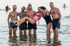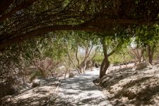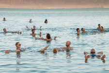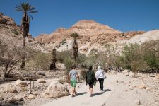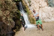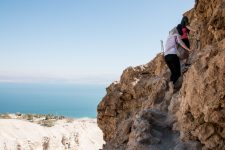 Unser nächster Halt ist der Naturpark „En Gedi“ am Toten Meer. Durch ein schmales Tal wandern wir an einem kleinen Bachlauf entlang. Eine kleine grüne Oase mitten in der Wüste. Immer wieder treffen wir auf kleine Wasserfälle während es steile Treppenabschnitte weiter aufwärts geht. Nach dem letzten Wasserfall, dem „David Fall“, gehen wir noch etwas weiter bergauf und genießen die tolle Aussicht auf das Tote Meer, das einige hundert Meter unter uns blau in der Mittagssonne funkelt. Nach unserem Abstieg checken wir schnell in unserem Hostel direkt unterhalb der Festung Masada ein und fahren noch ein Stück mit dem Auto weiter nach „En Bokhet“. Hier gibt es einen öffentlichen Strand am Toten Meer. Einige der anderen öffentlichen Strände an denen wir bisher vorbeikamen sind geschlossen, da der extrem schnell sinkende Wasserspiegel des Toten Meeres zu starken Einbrüchen am Ufer gesorgt hat. Das betreten dieser Gebiete heißt Lebensgefahr!