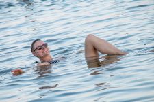 Aber an diesem Strand in der kleinen Touristenstadt besteht da keine Gefahr. Ich lege mich ins Wasser und schwebe wie auf einer Wolke. Selbst in den tiefen Bereichen kann ich stehen ohne mit den Füßen auf den Grund zu kommen. Was für ein Spaß! Und das Wasser ist ziemlich salzig: die Nordsee hat einen Salzgehalt von etwa 3,5%. Im Toten Meer sind es 35%!