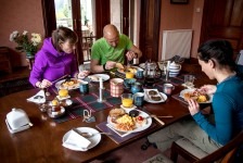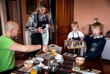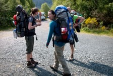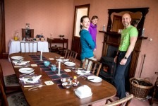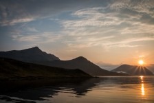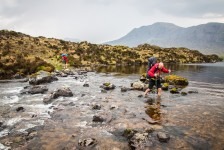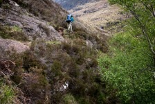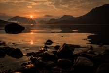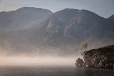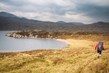 Nach einer sehr angenehmen und ruhigen Nacht im King Size Bed werden wir mit einem leckeren schottischen Frühstück überrascht: Baked Beans, Ei, Bratwurst, Speck und natürlich Tee. Aber das Highlight ist der schottische Black Pudding und das Haggis. Nach diesem tollen Frühstück geht es nach Kinlochewe. Dem Startpunkt unserer Wanderung. Auf dem Parkplatz teilen wir unsere Lebensmittel auf unsere Rucksäcke auf. Die Sonne brennt ganz schön auf uns herab. Und dann geht’s los: Der erste Teil des Weges führt durch eine Auen-Landschaft zwischen den Bergen hindurch in Richtung des Loch Maree. Nach ca 1,5 Stunden biegen wir nach einer Brücke in ein Tal ein. Jetzt geht’s ständig bergauf. Teilweise ist es ziemlich sumpfig. Unter uns fließt ein wilder Bach. Fasst schon ein kleiner Fluss. Nach weiteren 2 Stunden müssen wir diesen Fluss überqueren. Jetzt heißt es: Schuhe aus, Hose hoch und durch! Ganz schön kalt! Aber jetzt ist es nicht mehr weit bis zu unserem heutigen Zeltplatz. Wir bauen unsere Zelte direkt auf dem Kiesstrand des Loch irgendwas auf. Und es fängt an zu regnen. Wir verkriechen uns erstmal für eine Stunde in unsere Schlafsäcke bis die Sonne wieder herauskommt. Und der Hunger. Es gibt Nudeln mit Tomatensoße und Cabanossi. Die Sonne scheint und wir genießen den Blick auf den Lochan Fada und die Wolken die rechts und links von den Bergen herab in den See gleiten. Die Sonne geht genau auf der anderen Seite des Sees unter. Und wir verkriechen uns für die Nacht in unseren Zelten.