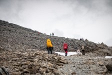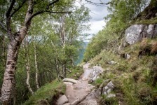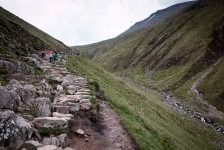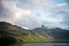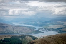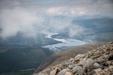 Unser Frühstück am nächsten Morgen nehmen wir dann lieber doch nicht gemeinsam mit den Midges ein und fahren zum Startpunkt unserer heutigen Wanderung: der Ben Nevis. Unser Wanderweg startet an der Jugendherberge im Tal Glen Nevis und führt und als erstes über eine Brücke und an ein paar auf den Felsen liegenden Schafen vorbei zum Fuß des höchsten Berges der britischen Inseln. Von jetzt an geht es nur noch in Serpentinen bergauf. Der Weg besteht zum größten Teil aus Felsen. Im unteren Teil geht es vorbei an einzelnen Bäumen und einzelnen grasenden Schafen. Später lichtet sich der Weg und der Blick ist frei ins Tal. Mit uns sind noch unzählige andere Wanderer auf dem gleichen Weg. Einige in neuester Wanderausrüstung und mit großen Kartentaschen, andere in Leggins und Stoffschuhen. Was für Unterschiede! Oben führt der Weg weiter in Serpentinen durch Stein- und Geröllfelder und wir können unter uns einige Seen in den Hochtälern sehen. Knapp unterhalb des Gipfels geht es dann durch Schneefelder weiter nach oben. Wir stecken nun mitten in der dichten Wolkendecke und unsere Sicht beträgt gerade nur wenige Meter. Steinhaufen weisen uns den Weg zum Gipfel über Schneefelder und Felder mit großen Steinbrocken. Die Aussicht vom Gipfel ist gleich Null: es herrscht dichter Nebel. Wir machen eine kurze Pause in den Ruinen der alten Wetterstation und machen uns dann auf dem gleichen Weg auf den Rückweg. Ab und zu bricht nun auch die Wolkendecke auf. Die Ausblicke in die umliegenden Täler sind einfach der Hammer! Aber es ist auch ziemlich anstrengend die 1343m wieder bergab zusteigen. Nach einem kurzen Stop in der Innenstadt von Fort William machen wir uns auf dem Rückweg zum Loch Lomond. Wir wollen auf der Ostseite campen und einen Tag relaxen um übermorgen den Ben Lomond zu besteigen. Weil es aber bereits etwas später geworden ist und wir ziemlichen Hunger haben beschließen wir auf einem wunderschön gelegenen Parkplatz unterhalb einer Wasser-Energie-Station direkt am Loch Lomond zu übernachten. Wir haben einen kleinen Strand direkt vor unserer Tür: unsere Badewanne! Und die Badewanne nutzen wir auch direkt nach dem Abendessen. Und für den Abwasch ist auch noch ausreichend Wasser vorhanden 🙂