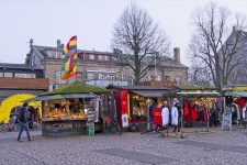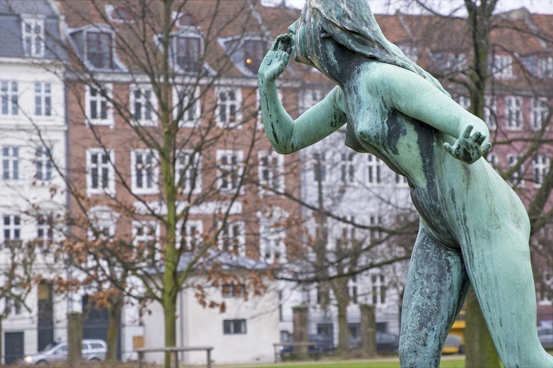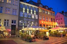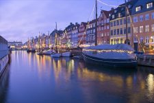Nicht weit entfernt von Christiana gibt es auch noch eine Kirche mit einem speziellen Turm. Auf halbem Weg nach oben führt die Treppe außen an Gebäude entlang. Ich hab gelesen, dass es schon ein wenig Schwindelfreiheit erfordert dort hinauf zu gehen. Leider ist der Turm im Winter geschlossen. Schade. Ich schlendere anschließend noch an einem Kanal entlang und entdecke eine Eisbahn inkl Streetfood Restaurants, sehr interessante Brücken für Fußgänger und Radfahrer, die sich mitten über dem Kanal in drei Teile teilen und an verschiedene Ufer führen. Als die Sonne fast untergegangen ist komme ich am Nyhavn vorbei. Viele Restaurants und Cafés liegen an diesem Stichkanal. Die Häuser sind bunt und manchmal auch etwa