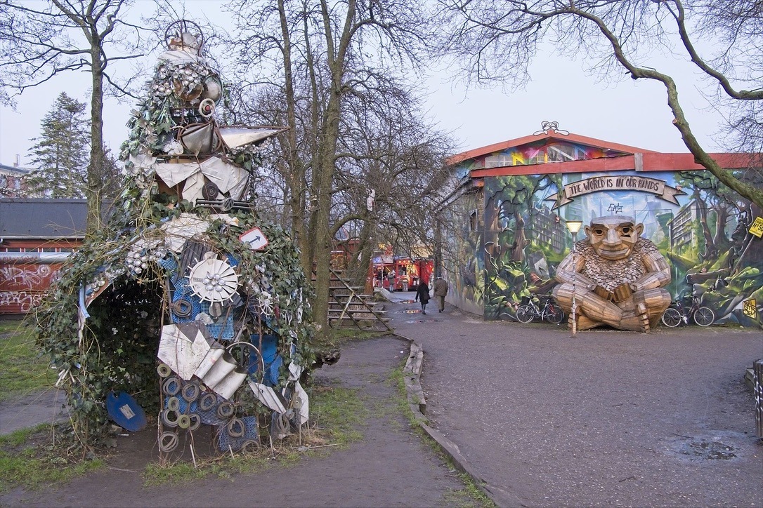 Nach einem sehr leckeren Kaffee besuche ich den Freistaat Christiansstadt. In diesem Gebiet haben sich meist linke Gruppen eine Art eigenen Staat geschaffen. Hier gibt es jede Menge Graffiti, große und kleine Kunstwerke und an jeder Ecke und auch zwischen den Ecken riecht es nach Marihuana. Fotografieren ist nicht erlaubt. Die Drogendealer mögen wohl keine Fotos.