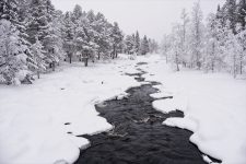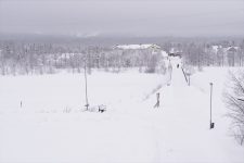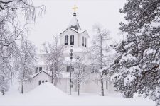 Gällivare ist eine kleine Stadt etwa 70km nördlich des Polarkreises und hat etwa 10000 Einwohner. Aber dafür sogar ein eigenes kleines Ski-Gebiet an den Hügeln in der Umgebung. Und Schnee gibt es hier wirklich eine Menge. Als ich bei einem kleinen See eine Abkürzung zurück auf den Hauptweg nehmen will, versinke ich bis zu den Knien im Schnee. Und das obwohl ich extra eine bereits tiefe Spur eines Motorschlittens genommen hab. Der Kulturweg führt vorbei an einer Holzkirche und vielen Holzhäusern, die entweder gut getarnt in weiß gestrichen sind, oder im kräftigen Weinrot an „Michel aus Lönneberga“ erinnern. Auch eine Holzmühle liegt verschneit auf einem kleinen Hügel.