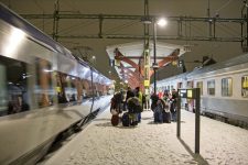 Um 5Uhr morgens schlafe ich dann doch ganz gut, bis mich eine Durchsage des Schaffners aus dem Schlaf reißt. „In etwa 30 Minuten erreichen wir den Bahnhof ‚Boden Central‘.“ so heißt es, Und „Dieser Zug fährt nicht weiter bis nach Narvik und auch nicht bis nach Gällivare. Am Bahnhof Boden steht ein Ersatzzug bis nach Gällivare bereit“. Als wir am Bahnhof Boden ankommen dauert es allerdings noch etwa eine Stunde, bis der Zug bereit steht. Es gab wohl Probleme. Aber wir können zumindest im warmen Zug warten bis der Ersatz eintrifft. Draußen ist es etwa -10°C kalt und es liegt eine Menge Schnee. Und es ist stockdunkel. Erst als der neue Zug auf dem Weg nach Gällivare ist geht das Schwarz der Nacht langsam in ein dunkles Blau über. Kurz vor Gällivare gibt es mal wieder eine Durchsage: „Für Reisende nach Narvik steht in Gällivare ein Hotel zur Verfügung, da die Straße nach Narvik noch immer gesperrt ist!“. Na Prima! Vom Schaffner erfahre ich dann, dass die Bahnstrecke gesperrt ist, da ein Waggon mit Erz, der wohl mehr als 80t wiegt, auf der Strecke entgleist ist.