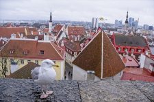 Heute morgen weht der Wind ganz schön kräftig als ich mit meinem großen Gepäck die paar Meter zur Fähre gehe. In Mitteleuropa weht ein Orkan mit dem Namen „Sabine“ und die Ausläufer reichen scheinbar bis in die östliche Ostsee. Ich bin früh dran und warte mit anderen Passagieren in der Wartehalle. Um 9.30Uhr bilden sich Warteschlangen vor den Gates. Es wird wohl gleich losgehen, also stelle ich mich einfach mal in einer Schlange an. Einlass ist aber erst um kurz nach 10Uhr. Und prompt schieben sich die Rentner an mir vorbei um die besten Plätze zu bekommen. Aber ich kann auch schieben. Ich ergattere einen Sitzplatz im Bord-Café am Fenster. Auf Deck 7. Das scheint ziemlich weit oben zu sein. Als die Fähre mit dem tollen Namen „XPRS“ ablegt hole ich mir noch einen Kaffee und ein Stück Kuchen. Die Fahrt führt vorbei an den kleinen Inseln und den noch viel kleineren Felsen, die aus der Ostsee herausschauen hinaus auf’s Meer. Die Wellen sind hier draußen schon etwas heftiger. Das Schiff schaukelt ganz schön hin und her und bei manch einer Welle die gebrochen wird, spritzt die Gischt bis zu mir auf Deck 7. zweieinhalb Stunden später erreicht die Fähre Tallinn. Als erstes sind hohe Kirchturmspitzen zu sehen von der Skyline der estnischen Hauptstadt. Auf dem 20min Fußweg zu meinem Hostel bekomme ich bereits einen kleinen Eindruck der Stadt. Die mittelalterliche Altstadt besteht zum größten Teil aus alten Häusern, manche haben nur eine Etage, aber die meisten 3 oder mehr. Viele Häuser könnten frischen Putz und ein bisschen Farbe gebrauchen. Aber insgesamt macht die Altstadt einen gemütlichen ersten Eindruck.