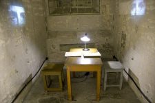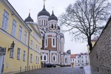 Nach dem CheckIn mache ich mich auf den Weg um die Stadt zu erkunden. Auf dem Domberg möchte ich mir eine russisch-Orthodoxe Kirche und den Dom anschauen, der dem Domberg den Namen schenkt. In der russisch-orthodoxen Kirche ist das Fotografieren leider nicht erlaubt, aber durch die Glastür am Eingang mache ich trotzdem ein heimliches Foto von der wirklich schmuckvollen Kirche: viel Gold, viele Kerzen und Reliquien. Die Domkirche ist leider verschlossen. Heute ist Montag und wie ich feststellen muss, haben am Montag einige Kirchen und die meisten Museen geschlossen. Also mache ich bei leichtem Regen einen Spaziergang zu verschiedenen Aussichtspunkten. Dabei steht mir an einer Stelle eine Möwe als Modell vor der Kamera, als ich im Hintergrund die Altstadt von oben fotografiere. Danke Möwe! An der Stadtmauer entdecke ich eine Gedenktafel an Boris Jelzin, als Dank für die Unterstützung für eine friedliche Unabhängigkeit 1991. Die Stadtmauer ist an vielen Stellen noch erhalten. Ich kann sogar mehrere Türme und die Teile der Stadtmauer besteigen. Nach einer Kaffeepause entscheide ich mich noch ein Museum zu besuchen, welches am Montag geöffnet hat: Das ehemalige KGB-Gefängnis. Es liegt im Keller eines Hauses in der Altstadt und diente ab 1902 erst als Gebäude für die russische Verwaltung, später, während der ersten Unabhängigkeit Estlands 1918-1920 nach der Revolution in Russland diente es den Esten für Verwaltungsaufgaben und als Estland 1920 eine Teilrepublik der UdSSR wurde, wurden hier ehemalige Freiheitskämpfer und Gegner der Kommunisten gefoltert und hingerichtet. Später zog der KGB in dieses Gebäude.