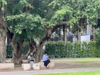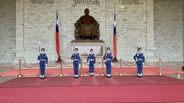 Gut gestärkt geht es zum Friedensplatz. Der Platz ist riesig. Auf der linken Seite steht ein riesiges Gebäude in chinesischen Stil: das Nationaltheater. Gegenüber die nationale Konzerthalle. Dazwischen ein riesiger Platz, den man durch das Friedenstor betritt. Das Brandenburger Tor passt hier mehrfach rein, so groß ist das Friedenstor. Mehrere hundert Meter entfernt, auf der anderen Seite des Platzes, steht ein riesiges weißes Gebäude im chinesischen Stil. Die Gedenkhalle an Chan Kai-Shek, dem ehemaligen Diktator, der Taiwan fast 40 Jahre im Kriegsrecht brutal regiert hat. In der riesigen Halle steht eine ebenso riesige Statue des Herrschers. Vor ihr halten zwei Soldaten wache. Ich komme pünktlich zur Wachablösung und ich muss sagen: ich habe noch nie eine solche Wachablösung gesehen: die Choreografie ist absolut symmetrisch aufgebaut und das jonglieren mit dem Gewehr ist wirklich stark. Die „Show“ dauert genau 10min und im Anschluss stehen zwei neue Soldaten auf ihren Sockeln. Und ein Mann in Zivil zupft bei jedem Soldaten noch die Uniform zurecht, damit alles perfekt ist. Krass.
