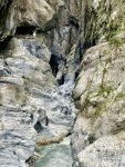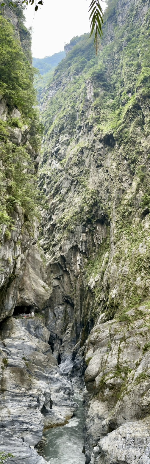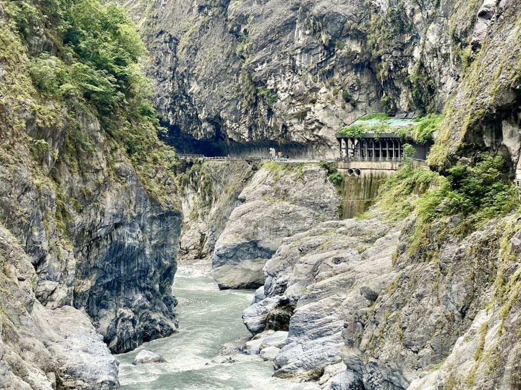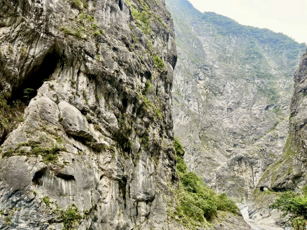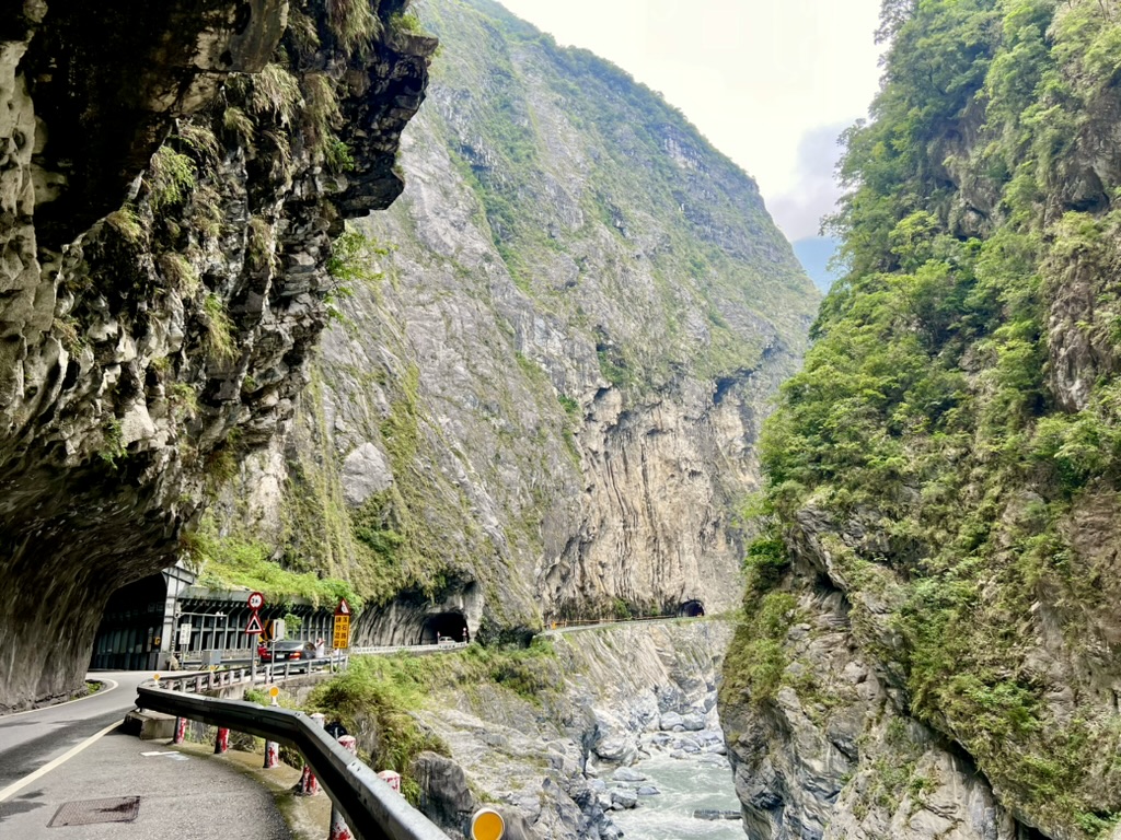 17. Oktober 2023 Heute miete ich mir ein Motorrad. Also eher einen Roller. Da in meinem internationalen Führerschein kein Motorrad abgestempelt ist, nimmt mich erst der dritte Verleiher und fragt auch nicht lange nach dem Führerschein. Mein erster Stop, nach einer kurzen Kaffeepause, ist ein Trail am Anfang der Taroko-Schlucht. Aber leider muss ich entdecken, dass der Trail seit heute für mehrere Tage geschlossen ist:“reconstruction of the Environment“. Schade. Gestern war der Weg noch geöffnet. Na dann geht’s halt weiter in die Schlucht hinein. Und wenige Kilometer weiter stehe ich plötzlich im Stau. Und ich kann den Anfang des Staus nicht sehen. Aber da ich ja ein Moped habe, kann ich ja einfach langsam am Stau vorbei nach vorne fahren. Ein Tunnel ist gesperrt und ich erfahre, dass der Tunnel mehrfach am Tag für einige Stunden gesperrt ist. Das ist also auch der Grund, warum ich gestern 1,5h auf den Bus warten musste. Ich hab aber Glück und wenige Minuten später wird der Tunnel geöffnet. Mit dem Moped kann ich super immer wieder am Straßenrand anhalten und Fotos der unheimlich hohen Felswände machen. Atemberaubend. Ein paar kurze Wanderungen bzw Spaziergänge mache ich aber trotzdem noch. Als ich mittags in einem Dorf eine kurze Pause mache, entdecke ich im Internet die Info, dass der Tunnel gleich noch etwa 30 Minuten geöffnet ist und dann wieder für die nächsten 2 Stunden gesperrt ist. Also entscheide ich ich, diese Öffnungszeit noch mitzunehmen und bin 4 Minuten vor Schließung durch den Tunnel durch. Nachmittags mache ich noch eine Fahrt zu einem Aussichtspunkt von dem aus man super die Klippen an der Pazifikküste sehen kann. Das ist schon beeindruckend, wie die hohen Berge hier fast direkt ins Meer reichen. Und in den steilen Abhang hinein ist eine Straße gebaut. Als Tunnel oder als Tunnel mit einer offenen Seite zum Meer. Später fahre ich noch zu einem Starbucks Café, welches in verschachtelte Container gebaut wurde. Sieht irgendwie cool aus, aber direkt neben dem riesigen Shopping Center dann doch irgendwie mickrig. Bei leichtem Regen fahre ich zurück zu meinem Moped-Verleiher und zum Abendessen geht’s mal wieder auf den Nachtmarkt.