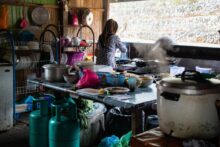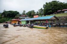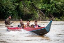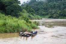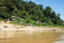 Nach dem Frühstück setze ich mit einem der Boote über den Fluss über. Ich habe mich beim Guide der letzten Nacht zu einer Dschungelwanderung angemeldet. Es hat letzte Nacht viel geregnet und das macht sich auch bereits am Wasserstand des Flusses bemerkbar.