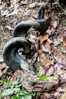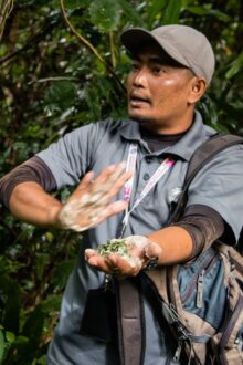 Ich find es auch ziemlich interessant, dass die Einheimischen kein Insektenspray gegen die Moskitos benutzen, sondern stattdessen die Natur nutzen indem sie die Blätter einer Pflanze mit etwas Wasser vertreiben. Daraus entsteht dann ein duftender Schaum, wie bei einer duftenden Seife. Und wie wir einige Minuten später selbst sehen können, funktioniert das auch mit den Blutegeln die sich hier auf die Suche nach frischem Blut gemacht haben. Die Bäume hier sind riesig! Einige sind mehrere hundert Jahre alt. Apropos: der Wald im Nationalpark Taman Negara ist der älteste Wald der Erde. Mit seinem 130 Millionen Jahren alten tropischen Dschungel beheimatet der Taman Negara das älteste Waldgebiet der Erde. Unter dem Einfluss von Eiszeiten, Klimaschwankungen oder Veränderungen des Meeresspiegels haben sich viele Teile der Welt verändert, aber auf der Malaiischen Halbinsel sind die Verhältnisse jedoch relativ stabil geblieben.