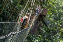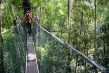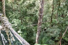 Ein Highlight dieser Wanderung ist der „Canopy Walk“. Dazu müssen wir erstmal einige Stufen nach oben steigen um dann etwa 500m von Baumkrone zu Baumkrone über den Wald wandern können. Das ist nur etwas für Schwindelfreie.