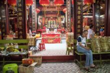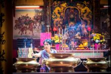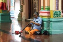 In Kuala Lumpur oder auch kurz KL angekommen mache ich als erstes einen Streifzug zu Chinatown. Auch hier gibt es wieder jede Menge Shops mit allem was das Herz begehrt: Kleidung, Schuhe, Uhren, ob echt oder vielleicht auch nicht. Aber es warten auch ein paar Tempel auf mich. Zuerst besuche ich ein paar chinesische Tempel. Hier brennen überall Räucherstäbchen und die Atmosphäre ist wieder unheimlich ruhig und entspannt im Gegensatz zu dem Gedränge auf den Strassen dieser asiatischen Großstadt. Aber am schönsten ist gerade in Chinatown der hinduistische Tempel. Ein Flötenspieler und ein Trommler spielen zu einer Zeremonie. Die vielen Statuen sind mit frischen Blumen geschmückt. Alles ist in leichten Pastellfarben gehalten. Und die Figuren erzählen Geschichten aus der hinduistischen Mythologie.